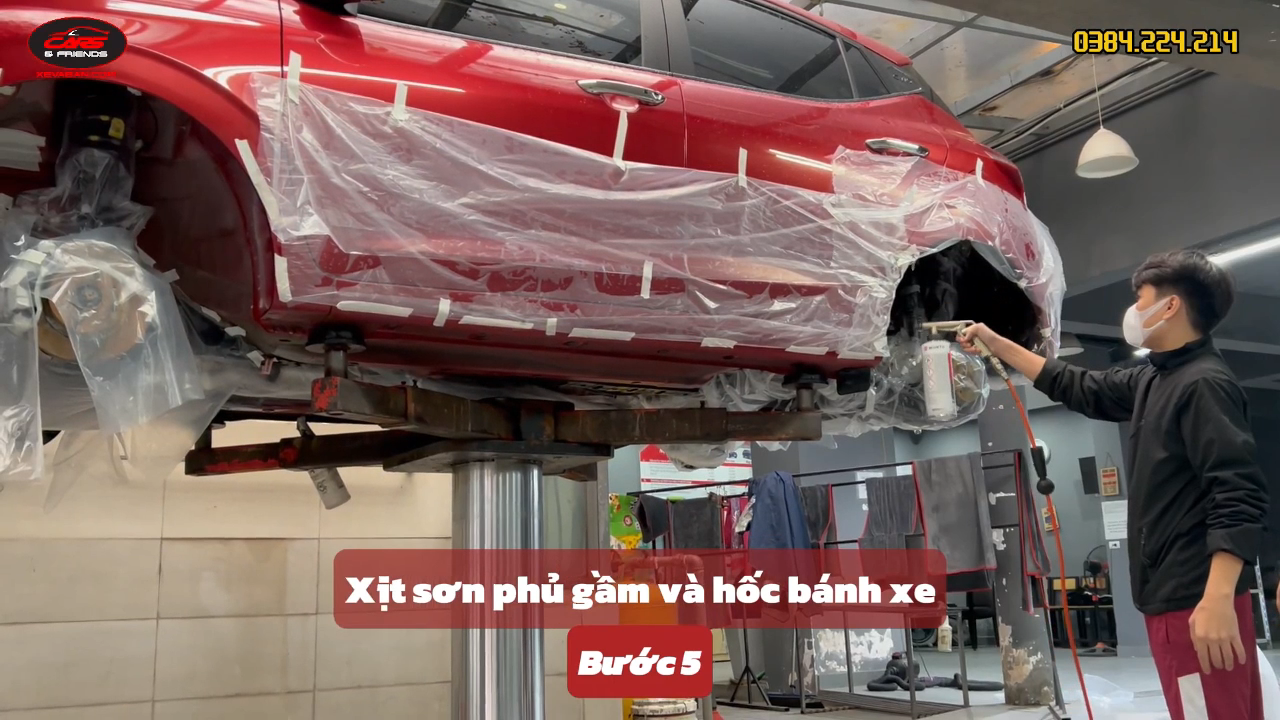 Bước 5: Xịt sơn phủ gầm và hốc bánh xe