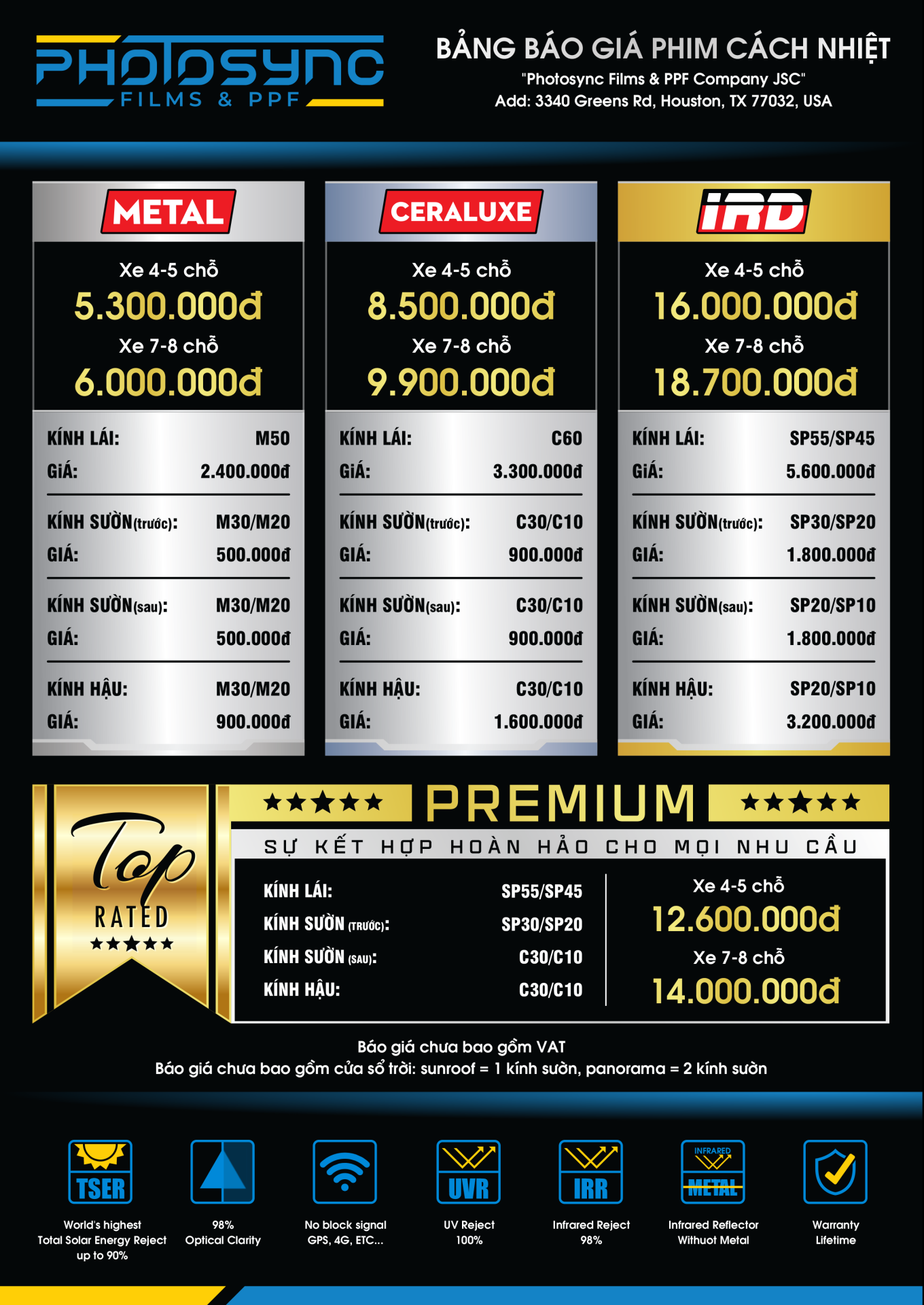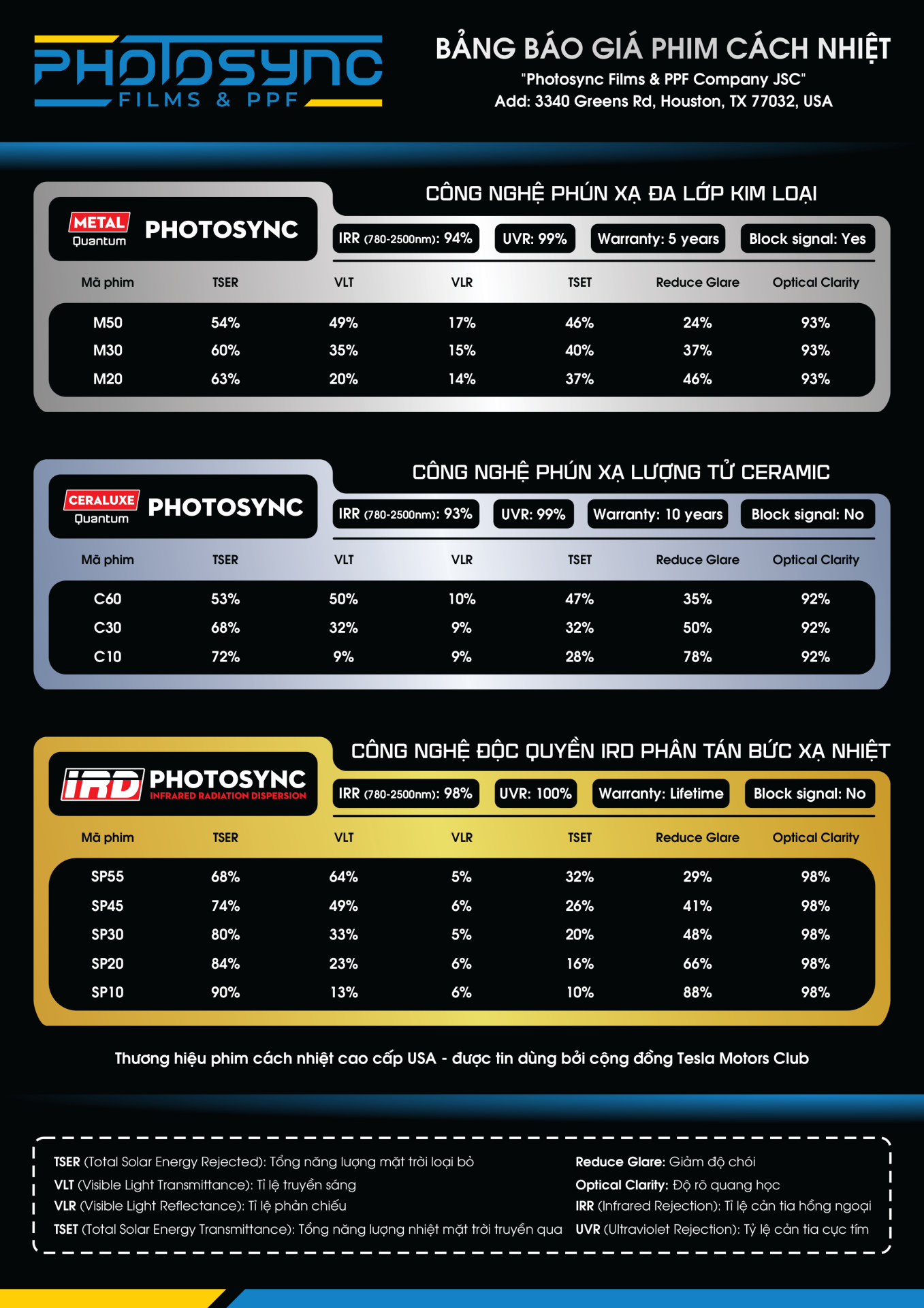 Spectra PhotoSync IRD® là phim cách nhiệt tiên tiến nhất hiện có trên thị trường, cung cấp cho người lái và hành khách sự bảo vệ tối ưu khỏi tia UV có hại, bức xạ mặt trời và nhiệt dư thừa trong khí hậu nhiệt đới như ở Việt Nam ta.