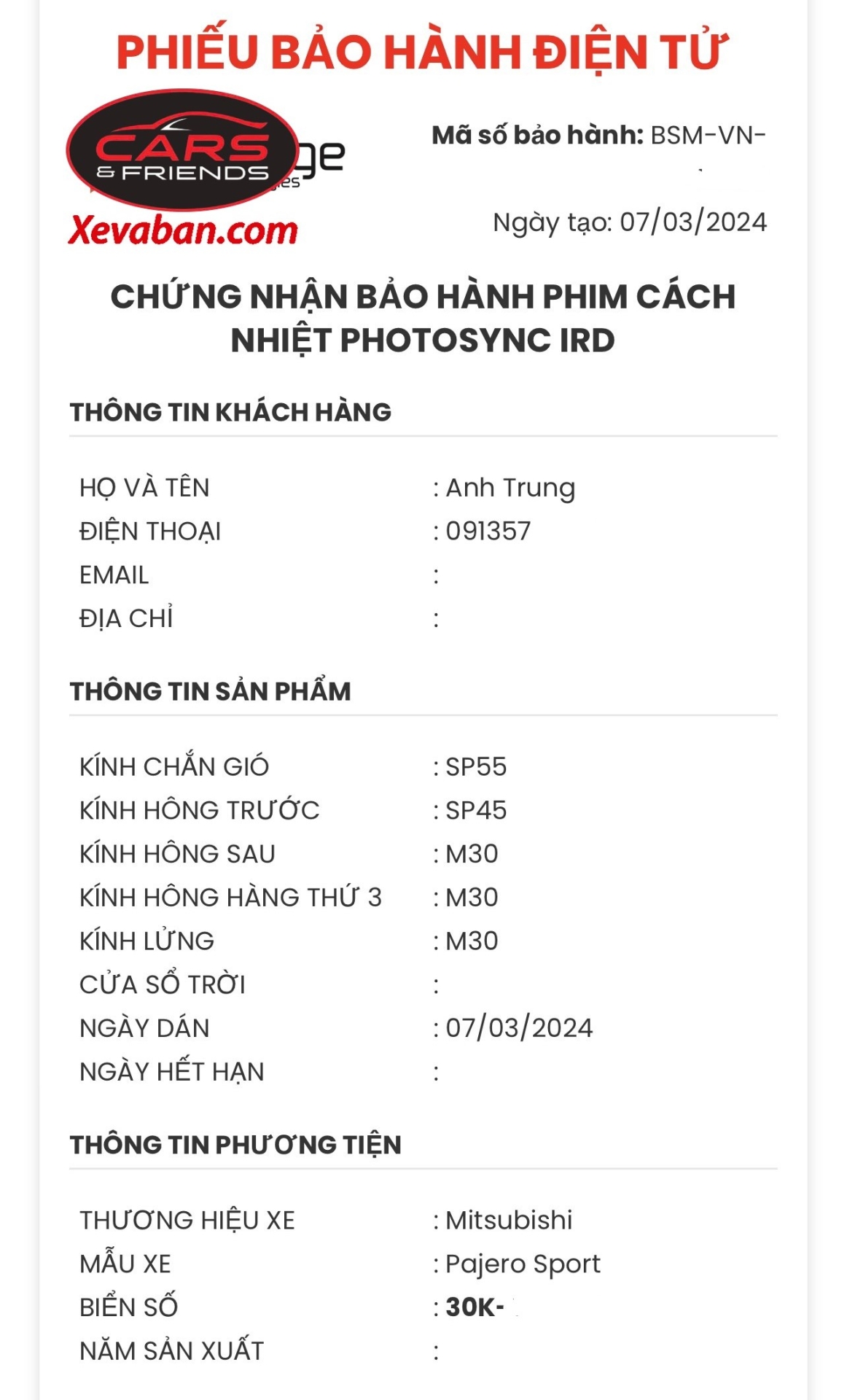 6. Khách hàng dán film Photosync tại Xevaban.com 214 Giải Phóng